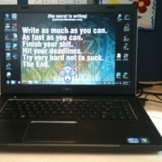 I have a new writing platform. Instead of trying finance a whole new gaming laptop this year (which I can’t and shouldn’t), I found a super duper cheap laptop and was surprised at the deal. The battery life almost tops five hours, it boots up super fast and it’s light and small (14inch). It’s very very portable unlike my regular one and doesn’t require a plug or an extra keyboard and mouse. Like Kiddo (who I’ve been jealous of, since I got her a new laptop not long ago for schoolwork), I can now just sit, open and write within two minutes of getting somewhere (instead of futzing, making room, finding a plug, booting up, fiddling to get the USB keyboard working etc..and maybe settling down to writing in ten or fifteen minutes). I really enjoy it.